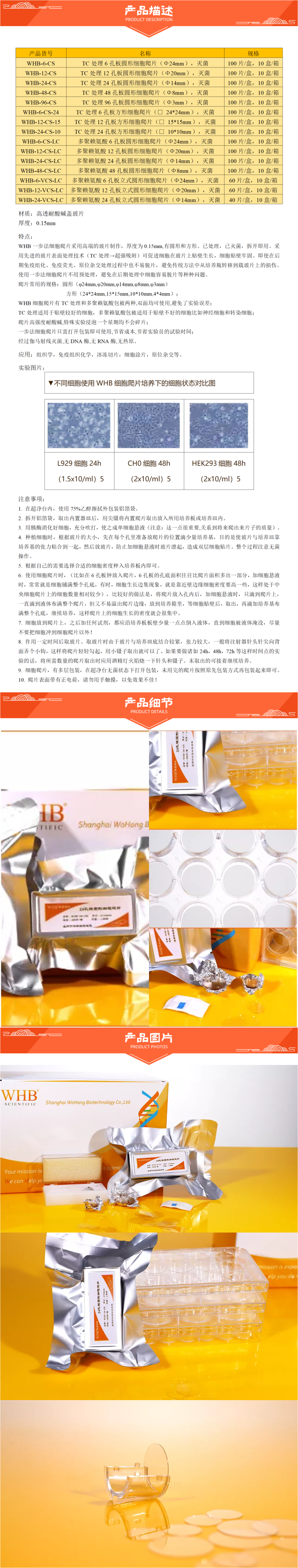 WHB WHB-6-CS-24 TC处理6孔板方形细胞爬片(□ 24*24mm),灭菌